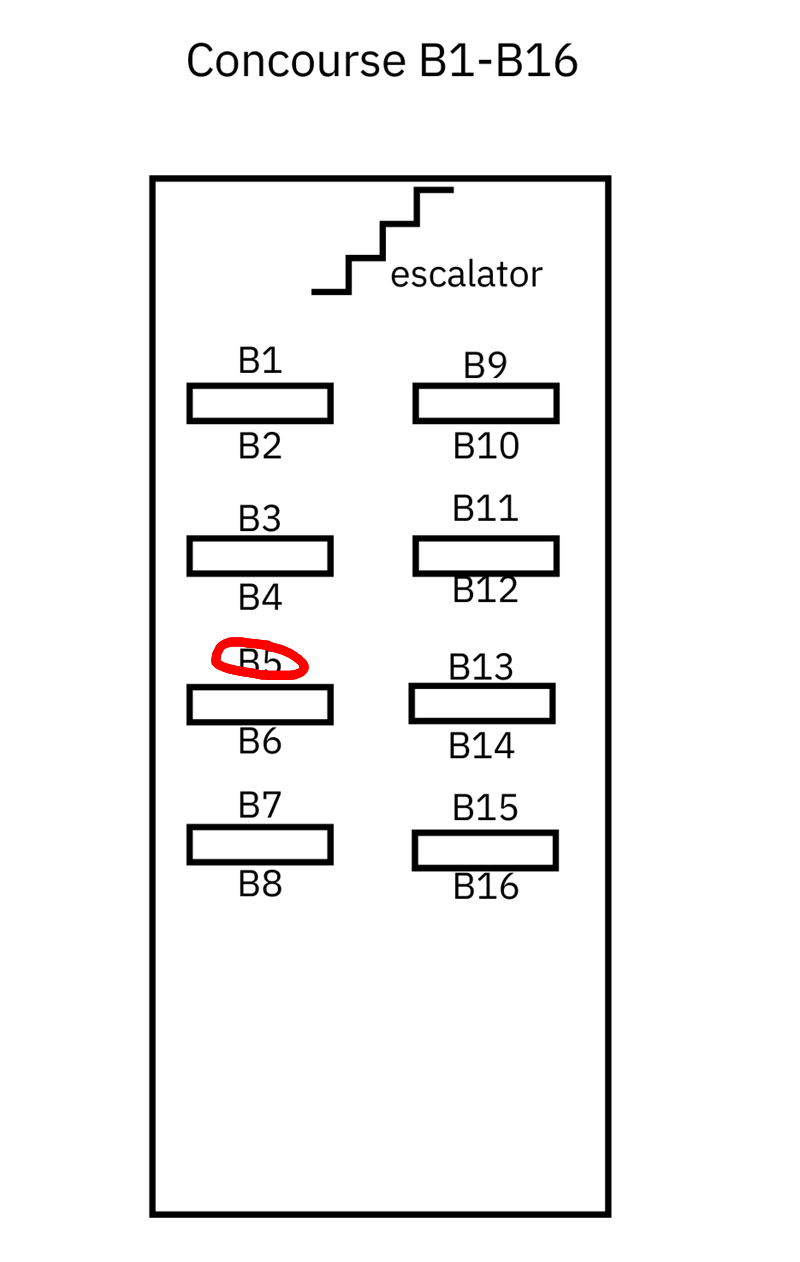 B5, Row 1 (B1-B8), Concourse